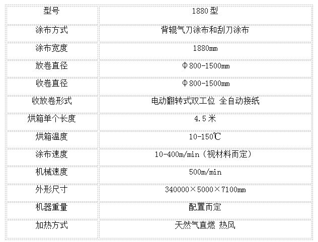 1880型熱敏紙涂布機(jī)技術(shù)參數(shù):